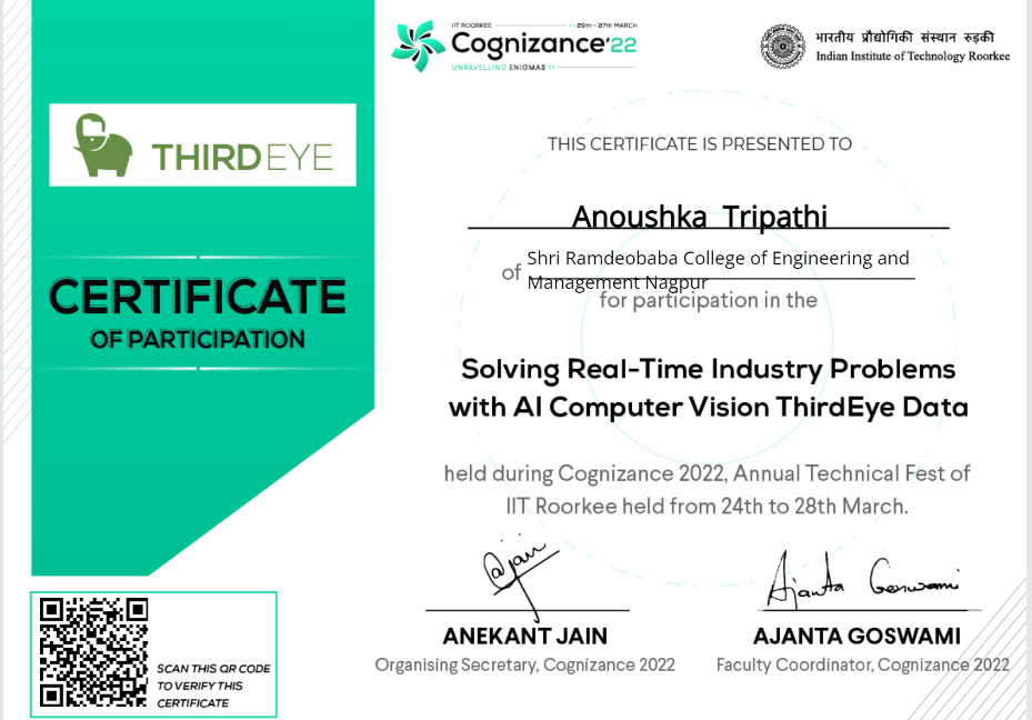 404 resolved! NSS IIT Delhi Hackathon Finalist,IIT ROORKEE TECHZIBITION 2022 Finalist,Google Solution challenge 2022, RACA Khoj 2022-23(presented a pitch on Construction Drones), RCOEM TATA CIIIT internship, iDEX AI for Defence Challenge,Conducted a training program for students on Metrology and CMM Technical Team member for college yearly magazine ARCEON